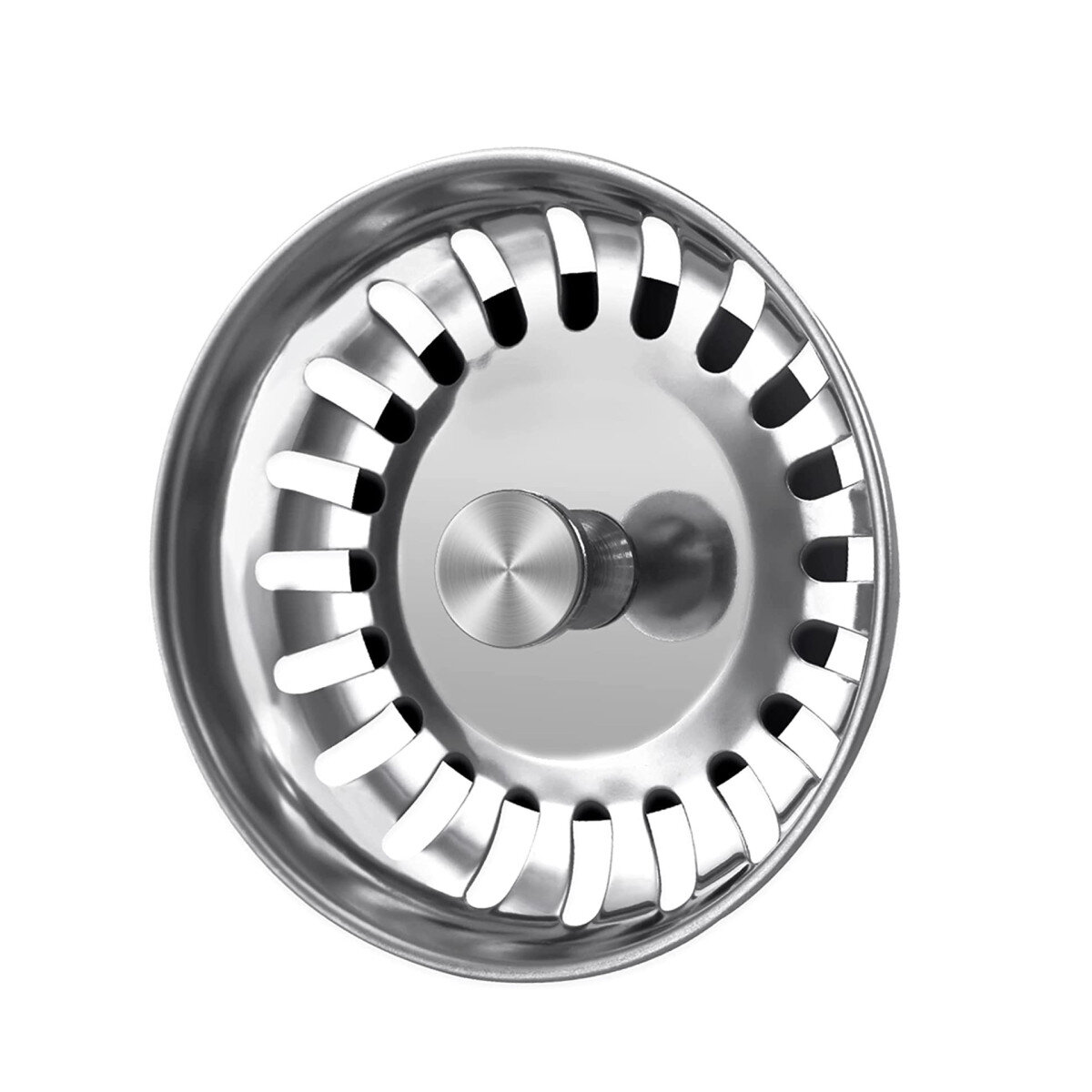 Універсальна сітка-клапан з нержавіючої сталі AISI 304 для кухонної мийки. Підходить до стандартних зливів діаметром 80–83 мм. У комплекті два змінні штифти – 15 і 22 мм для різної глибини сифона. Діаметр штифта – 8 мм.